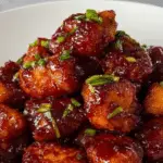 A sprinkle of freshly chopped parsley or green onions adds a pop of color and a fresh contrast to the sweet and smoky chicken bites. You can also toss a little sesame seed on top for a subtle crunch and visual interest.