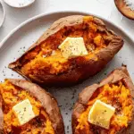 Reheat your baked sweet potatoes in the oven at 350°F until warmed through for the best texture, or microwave them on high for a couple of minutes if you’re in a hurry. Adding a little butter before reheating helps bring back that fresh-from-the-oven richness.
