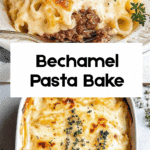 Bechamel Pasta Bake, also known as Macarona Bechamel, is a comforting Middle Eastern dish made with layers of penne pasta, spiced ground beef, and a rich, creamy béchamel sauce. Baked until golden and bubbly, it’s perfect for family dinners or gatherings.