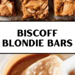 Lift the entire block out of the pan using the parchment paper edges. Slice into 16 squares and prepare yourself for an utterly delicious Biscoff Blondie Bars Recipe experience that everyone will rave about!