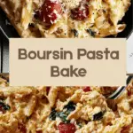 Boursin Cheese Pasta is a rich, flavorful dish that’s sure to satisfy. With creamy Boursin cheese, perfectly cooked pasta, tangy tomatoes, and fresh spinach, it’s a one-dish meal that’s perfect for any occasion. Whether you’re serving it for a weeknight dinner or a gathering, this pasta bake will be a hit with family and friends! Enjoy this cheesy, comforting meal today!
