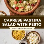 If you prefer a warm salad, gently reheat the pesto-coated pastina in a pan over low heat, then toss in fresh tomatoes and mozzarella after reheating to maintain their texture and flavor. Avoid microwaving to keep the mozzarella from becoming rubbery.