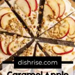 If you want to save some for later, you can freeze the cookie base without toppings. Wrap it tightly in plastic wrap and then foil, freezing for up to a month. When ready to enjoy, thaw it completely before adding the caramel cheesecake layer, apples, nuts, and caramel drizzle fresh for the best experience.