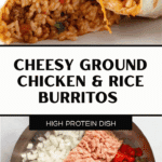 These Cheesy Ground Chicken and Rice Burritos are a quick and delicious meal perfect for busy weeknights. Featuring a flavorful combination of seasoned ground chicken, sautéed vegetables, cooked rice, and melted cheeses wrapped in soft flour tortillas, these burritos are toasted to perfection for a crispy outside and gooey inside. They’re easy to customize with your favorite salsa and toppings, making them a satisfying and versatile Mexican-inspired dish the whole family will enjoy.