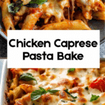 This Chicken Caprese Pasta Bake is a comforting, freezer-friendly casserole featuring tender chicken thighs, penne pasta, cherry tomatoes, marinara sauce, and melted mozzarella. Finished with fresh basil and a drizzle of balsamic reduction, it’s perfect for busy weeknights or make-ahead meals.