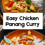 This Chicken Panang Curry is a Thai-style curry that’s rich, creamy, and mildly spiced. Made with coconut milk, peanut butter, and Panang curry paste, it delivers a delicious nutty flavor and comes together in just 30 minutes—perfect for a quick weeknight dinner.