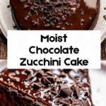 This rich and moist Chocolate Zucchini Cake is a delicious way to use up extra zucchini. Made with cocoa powder, brown sugar, and a luscious chocolate ganache topping, it’s the perfect dessert that no one will guess has vegetables in it!