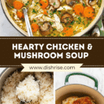This hearty Chicken and Mushroom Soup combines tender chicken, earthy mushrooms, and nutritious vegetables in a flavorful broth enriched with herbs and Parmesan cheese. Perfect for a cozy meal, this soup features cooked rice for added texture and substance, simmered gently to meld all the delicious flavors.