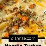 This Creamy Turkey Sausage Potato Soup is a hearty, flavorful soup made with ground turkey sausage, tender red potatoes, and savory vegetables. Perfect for a cozy meal, it can be easily prepared on the stovetop or in a Crock Pot, delivering comforting warmth and rich taste.