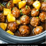 - Add frozen meatballs and drained pineapple chunks to the crock pot.