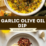 For a party or casual gathering, try serving this Garlic Olive Oil Dip Recipe in small individual bowls alongside an assortment of breads and even raw veggies like bell pepper slices or cucumber. You could also drizzle the dip over grilled vegetables or roasted potatoes as an extra layer of flavor!