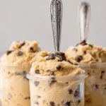 This cookie dough is best enjoyed chilled or at room temperature since it’s not baked. If frozen, allow it to sit out for a few minutes before digging in so the textures soften perfectly.