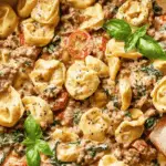 This Ground Beef Tortellini Recipe is a quick and delicious Italian-inspired dish featuring tender fresh cheese tortellini cooked in a creamy tomato and spinach sauce with savory ground beef and aromatic herbs. Ready in just 20 minutes, this hearty meal serves 12 and combines comforting flavors with easy preparation perfect for a weeknight dinner.