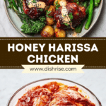 For a fun twist on the classic, try serving the chicken and veggies in individual ramekins over couscous for a restaurant-style plating. Alternatively, pile the roasted chicken, potatoes, and broccoli on a large communal platter for a cozy family-style meal that invites everyone to dig in together. No matter how it’s plated, this Honey Harissa Chicken Sheet Pan Recipe will impress.