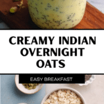 Leftover Indian Overnight Oats can be stored in the refrigerator tightly sealed for up to two days. Keeping it chilled helps maintain freshness, and since it tastes even better as it sits, the flavors continue to develop.