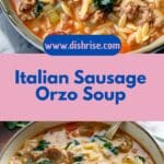 A hearty and flavorful soup made with Italian sausage, orzo pasta, and vegetables simmered in a savory broth—perfect for cozy dinners or make-ahead meals.