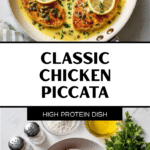 Chicken Piccata features tender, boneless skinless chicken breasts lightly floured and pan-fried until golden and cooked through, then simmered in a bright and tangy lemon butter sauce enriched with capers and fresh parsley. This classic Italian-American dish offers a perfect balance of savory, buttery flavors and a zesty citrus punch, making it an elegant yet easy weeknight dinner.