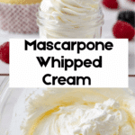 Make silky mascarpone whipped cream in minutes with only 4 ingredients! This stabilized whipped cream frosting is sweet and tangy, perfect for topping cakes, cupcakes, pies, and more. It combines creamy mascarpone cheese with rich heavy whipping cream, sweetened with powdered sugar and flavored with pure vanilla extract to create a luscious, smooth frosting that holds its shape beautifully.
