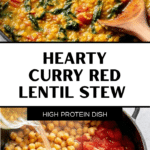 A hearty and flavorful Indian-inspired red lentil stew featuring chickpeas and kale, simmered with aromatic spices like curry powder, cumin, and turmeric. This vegan stew is perfect served over rice or quinoa for a nutritious lunch or dinner option.