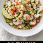 - In a large bowl, combine diced raw shrimp and lime juice, ensuring the shrimp is fully submerged. Let sit for 15 minutes or until shrimp turns opaque and is no longer grey.
