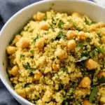 This Simple Curry Spiced Quinoa is a vibrant, nutritious dish packed with fragrant curry powder, fresh herbs, and a mix of wholesome ingredients like chickpeas, golden raisins, and slivered almonds. Perfect as a main or side dish, it combines tender quinoa cooked in vegetable broth with a zesty lemon and vinegar dressing for a flavorful, easy-to-make meal that takes just 30 minutes and serves six.