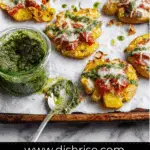 For serving at a party, arrange your Smashed Potato Pesto Pizzas Recipe on a large wooden board alongside small bowls of extra pesto and marinara for dipping. You can also skewer a few together for fun finger food or serve them atop a bed of mixed greens for an attractive plated appetizer presentation that will wow guests visually and taste-wise.