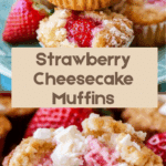 These Strawberry Cheesecake Muffins are soft and moist, filled with chopped strawberries, layered with a sweet cream cheese filling, and topped with a cinnamon streusel. A perfect indulgence for breakfast or brunch.