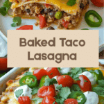 Taco Lasagna is a cheesy, oven-baked casserole that layers all your favorite taco ingredients—seasoned beef, refried beans, salsa, black beans, tortillas, and melted Colby Jack cheese—into one hearty and comforting dish.