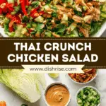 A vibrant and refreshing Thai Crunch Chicken Salad featuring shredded chicken, crisp vegetables, and fresh herbs, all tossed in a creamy, tangy peanut dressing. Perfect for a light lunch or a flavorful side dish, this salad combines crunchy textures with bold Thai-inspired flavors in under 30 minutes.