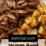- Finish and Serve: Once cooked to your liking, remove from heat. Optionally, top the vegan beef strips with extra black pepper and dried parsley flakes before serving for a touch of garnish and added flavor.